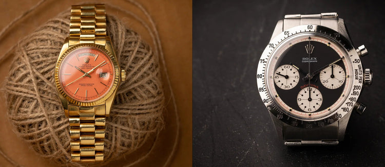 Discover vintage legends like the Rolex Day-Date Ref. 1803, featuring its original satin champagne dial and unpolished gold case — a true collector’s treasure that represents Rolex’s golden era of craftsmanship.